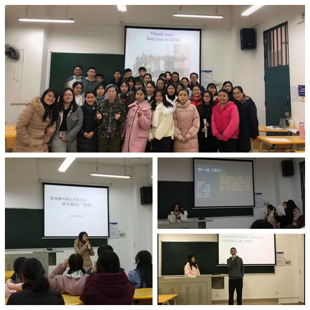 2018年12月27日上午,2015级英语(翻译)专业的同学们在2210教室上了一堂对于他们来说意义非凡的课——《应用翻译2》。这堂课之所以与众不同,不仅因为这是他们在这学期的最后一堂课,还是他们大学四年的最后一堂课。在课上,同学们进行了该课程的期末考核活动——“剧本翻译广播剧”的表演。