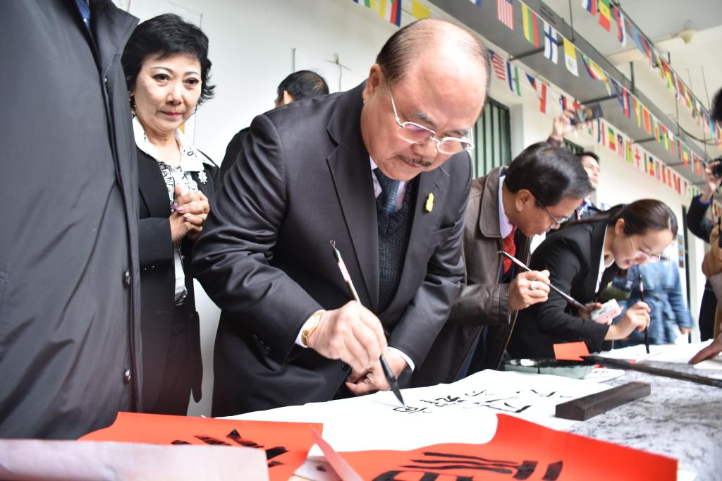 图:泰国代表团学写中国书法