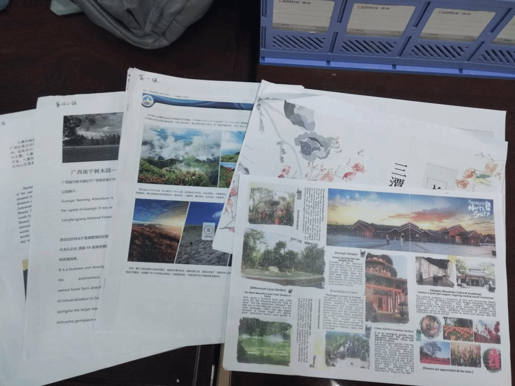 本次课为学生展示课,在前期的学习及练习中,学生以小组为单位,自行寻找中国各地景区的景点中文介绍词并进行翻译、审校、排版制作。在课堂上,学生们分小组依次展示了各自的翻译成果。全班一共完成了江西武功山景区、南宁青秀山景区、南宁良凤江森林公园、广西十万大山八寨沟景区及杭州三潭映月景点的翻译。在展示中,同学们先后介绍了原文语言特点、最终译文、翻译中遇到的困难及解决办法,也就自己翻译后所得的感悟跟现场的老师同学们进行了分享。每组展示完成了梁晨老师也就该组的内容进行了提问和点评。公开课结束后,翻译教研室的老师们也就该堂课的上课内容,效果进行了反思,交流和沟通。