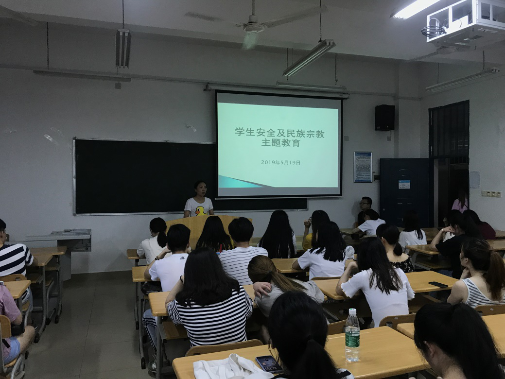 为切实加强我专业学生安全意识和民族宗教领域安全意识,5月19日,2016级商务英语翻译专业召开“筑安全高墙,防宗教渗透”为主题的班会,班会由辅导员韦微老师主讲,2016级商英、翻译专业全体同学接受了本次教育学习。