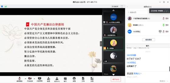 通过此次线上会议,支部党员同志们明晰了作为党员的责任与担当,必须做到廉洁公正,必须时刻保持着党员的纯洁性。会议也增强了支部党员们凝聚力,进一步坚定了成员们做一名优秀党员的决心。