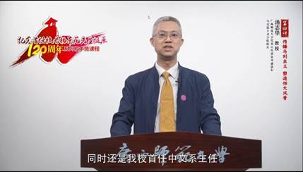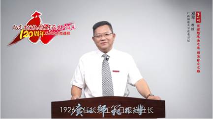 广西师范大学党委书记邓军教授从“在追寻真理中坚定理想信念”“在内忧外患中坚定理想信念”“在实践检验中升华理想信念”三个层面讲解,以杨东莼校长的生平事迹,教导广大师生如何利用理想信念之光照亮人生奋斗之路;广西师范大学校长贺祖斌教授讲述了杨东莼校长探索“团体训练”的集体主义教育、打造“自主研究”的启发式学习探索模式以及在构建民主和谐的平等师生关系中的典型教学事例,鼓励大家以变革精神推动治校育人;广西师范大学校党委常委副校长林春逸教授围绕杨东莼先生培养学生自主管理能力、处事态度等方面,对学生健全人格的培养及其对新时代高校师生人格品德培养的启示等进行了讲授;广西师范大学校党委宣传部常务副部长汤志华教授以新时代如何继续高举马克思主义的伟大旗帜,丰富马克思主义理论素养以及将信仰转化为实际行动出发,从杨东莼先生言传身教点燃马克思主义火种、引导学生传播马克思主义思想以及开拓阵地推动马克思思想大众化方面进行了生动的讲授。