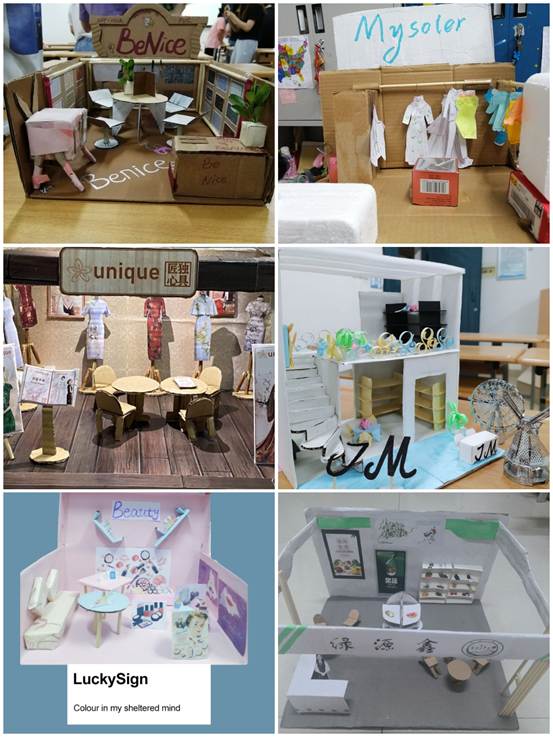 在当前的特殊时期,为避免学生大批量聚集,同时又能体验一次参展活动,梁晨老师将展会移入课堂,使用各种手段让模拟活动更有真实感。学生在参加活动时,不仅学以致用,锻炼了语言表达能力,还锻炼了手工制作能力、团队协调能力,提高了服务意识、团队意识。大家都纷纷表示该次活动有新意有意义,“非常兴奋”,“意犹未尽”。课堂实践活动结束后,同学们制作的展位模型还将在2区教学楼2楼休息区进行展示,供来往的师生们欣赏。