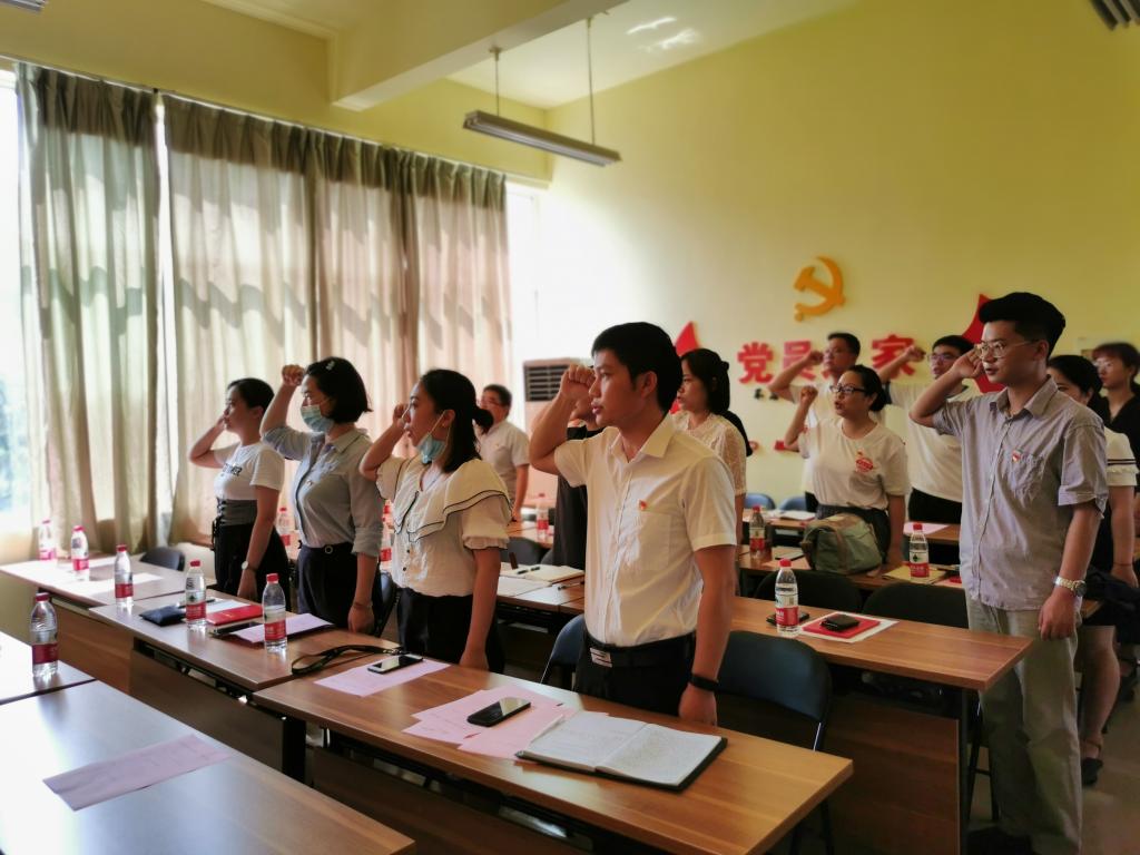 心有所信,方能远行,希望广大党员特别是青年党员认真学习马克思主义理论,结合学习党史、新中国史、改革开放史及社会主义发展史,在学思践悟中坚定理想信念,在奋发有为中践行初心使命,努力为实现“两个一百年”奋斗目标、实现中华民族伟大复兴中国梦贡献智慧和力量。整个会议在全体师生党员重温入党誓词后圆满结束。