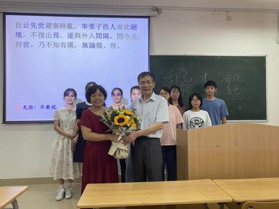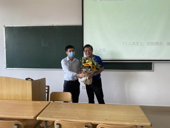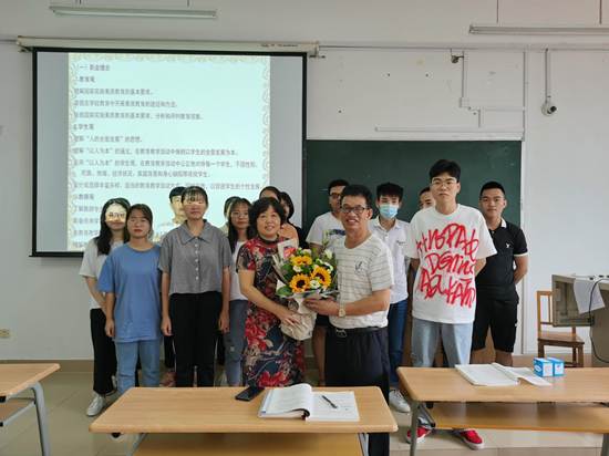 “教师节快乐!”何玲院长一行来到教室,向我院潘冠海教授送上节日的鲜花,何玲院长肯定了潘教授为我院发展作出的贡献,对潘教授在三尺讲台上诲人不倦表达感谢,最后与同学们一起合影留念。