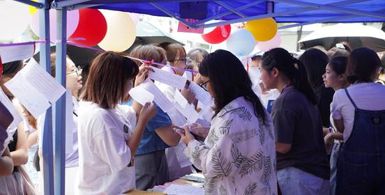 本次活动在乐善广场举行,活动形式多样,得到了同学们的一致认可,现场师生将近三百人。活动区域分为普测区、活动区、展示区。在普测区,有国家专业普通话测试员李钰老师、省级专业普通话测试员陈锴老师和钟锟老师为同学们模拟普通话测试,并指出存在的问题,转变同学们对普通话固有的看法,真正让推广普通话落到实处。活动区有着各式各样的语言文字游戏,笑声连连,同学们在玩乐中走进语言文字。在展示区,半步斋书画社的同学现场挥毫泼墨,以优美的汉字展示中华语言的独特魅力。