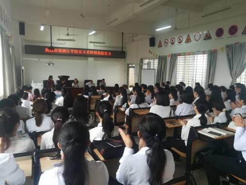 入校后雁山中学教务处的黄主任对实习生的到来表示热烈的欢迎和热情的接待,然后利用课间时间组织召开简短的师生见面会,会上周副校长对实习学生提出了实习要求和期望,鼓励学生勤学善问,多向指导老师取经学习,并欢迎实习生毕业后前往该校就业。在进行完指导老师以及班级的分配安排之后,实习生们与实习指导老师见面,听从指导老师的工作安排,开始实习工作。