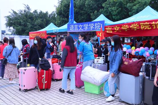 金秋气爽,丹桂飘香,又是一年开学季,语言文学学院学院迎来了2020级新生入学报到开学日。为确保迎新工作高效有序的进行,学院领导班子提前对新生报到工作做了详细的安排和部署,迎新当日感受来自于老师与学长学姐的热情,一声声贴心的问候,2020级新生们在迎新工作人员的带领下,完成报到注册工作并开启一段全新的大学旅程。