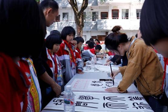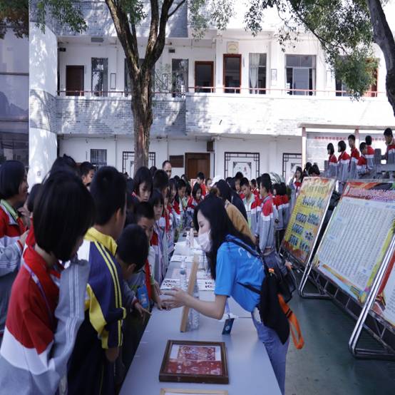 10月28日上午我院受邀至高田民族学校参加文化艺术节,利用学院教育资源,加强发挥教育队伍的引领作用,本次活动由我院团总支副书记黄幸津老师、辅导员闭彬彬与社团干部成员共同参与。