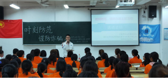 各支部通过观看今日说法、新闻联播等相关网络诈骗案例的视频,让同学们认识到电信诈骗就隐藏在我们身边,进一步向同学们讲解了防范诈骗的方法以及如何保护个人信息。此次团日活动各支部形式多样,以预防电信诈骗知识竞答、预防诈骗演讲、反诈骗情景剧表演等形式向同学们说明谨防网络诈骗的重要性。