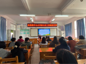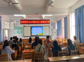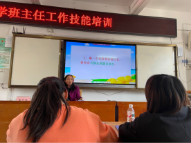 2020年11月11日星期三下午三点,桂林市会仙镇中心小学秦秀珍老师在大阶梯会议室为10名17级实习生和学校里各班班主任进行了班主任工作技能讲座培训。