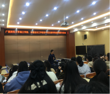 活动的最后,广西师范大学漓江学院潘冠海教授、永福县东江学校的黄小娟副校长以及永福县东江学院语文组的组长做了发言,就两位老师在本次课上的优缺点进行了点评,并就如何上好一堂语文课提出了切实可行的建议,同时也表达了希望青年教师不断钻研教学方法,争取上好每一堂语文课。