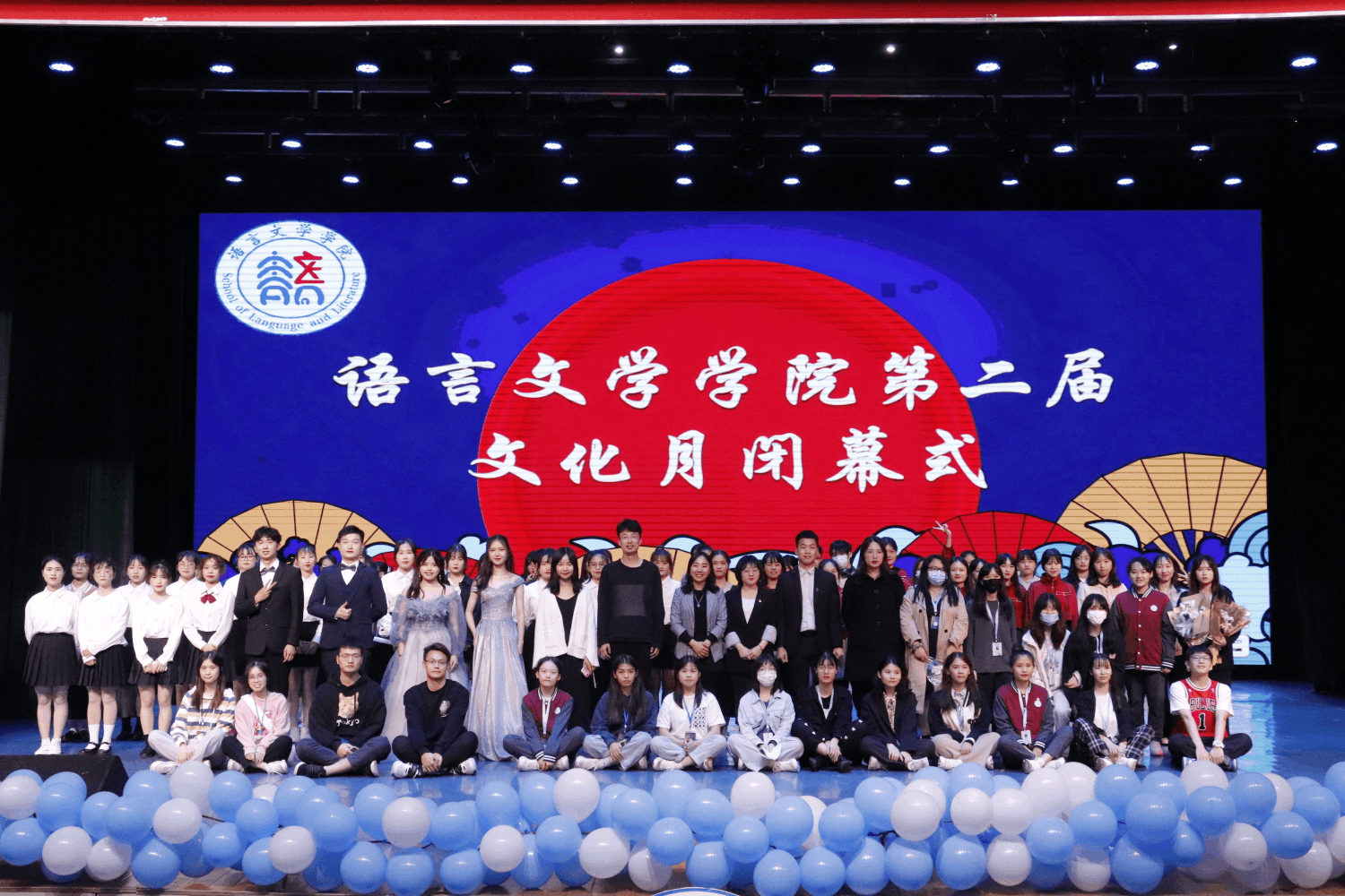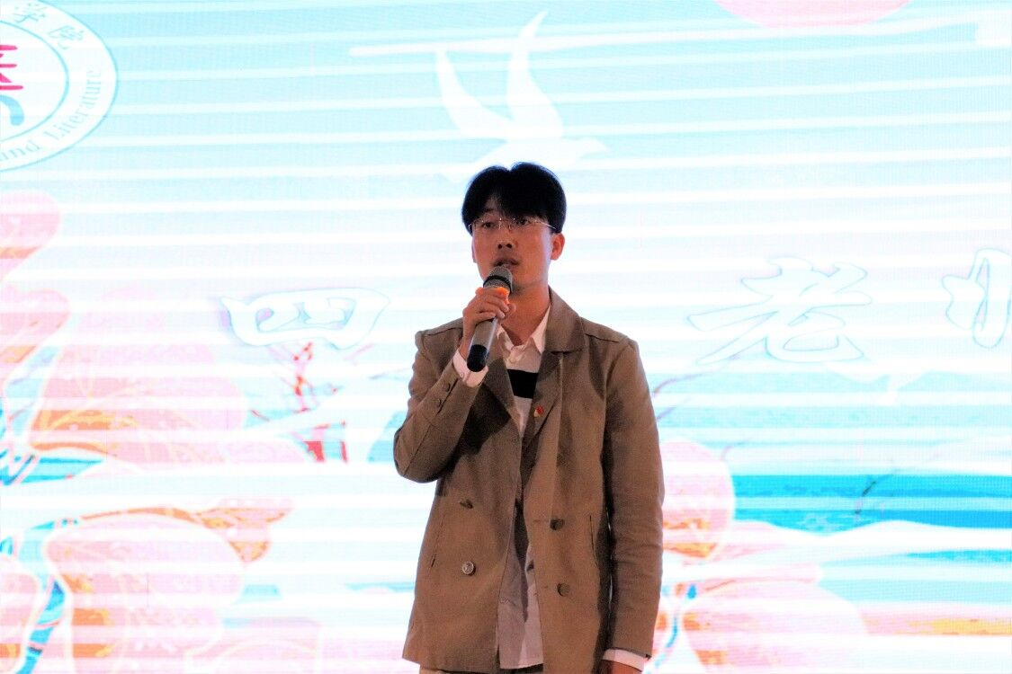 4月28日,我院第二届文化月闭幕式晚会在弘善讲堂举行。闭幕式以“语言文学学院文化月”成果展示、节目表演以及颁奖等形式进行。朗诵《祖国啊,我的祖国》、礼仪队走秀《霓裳羽衣》、相声《铃铛谱》等节目,不仅展现了同学们地建党百年的深切祝福,也体现了我院学子丰富的才艺技能,更展现了浓厚的校园文化艺术氛围,丰富了校园生活,践行了向学、向善、自律、自强的校训。