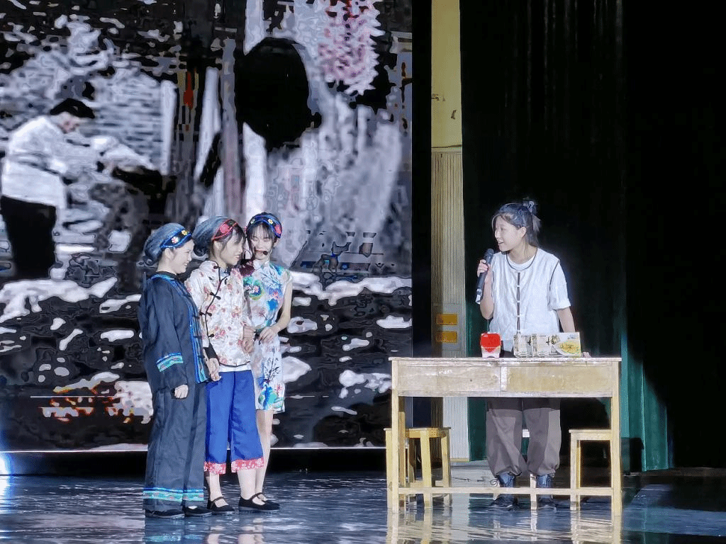 在表演结束后,陈秀芬老师与谢索菲老师上台讲话,肯定了同学们的认真学习与勤奋刻苦。同学们也纷纷表示,尽管与专业的学生相比还存在很多不足,但从学习开始,到去阳朔福利镇调研,再到准备这次的汇报演出,大家都深深感受到了广西文场的魅力,表示一定会把广西文场曲艺文化学好,弘扬中国非遗传统文化。