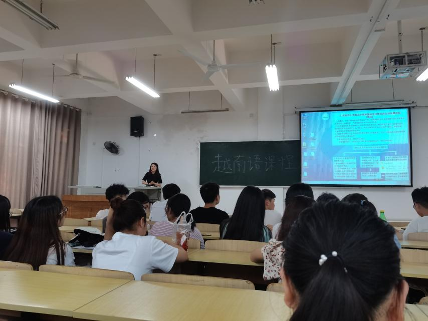 首先,阳老师向同学们介绍了越南这一国家的地域风情和文化特色,让同学们对越南这一国家又有了新的认识。随后,阳老师向同学们介绍了越南语的相关课程以及越南语的就业前景。最后,阳老师对同学们提出的相关问题进行解答,现场掌声连连。