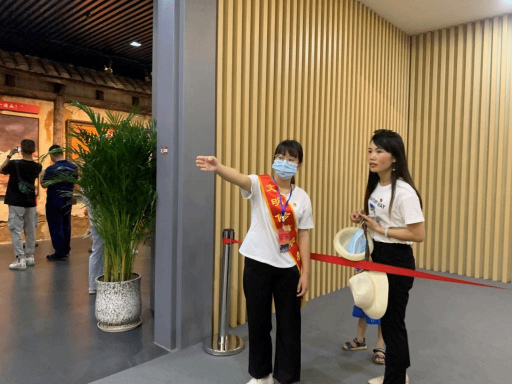 图为语言文学学院志愿者引导参观的群众有序进行参观