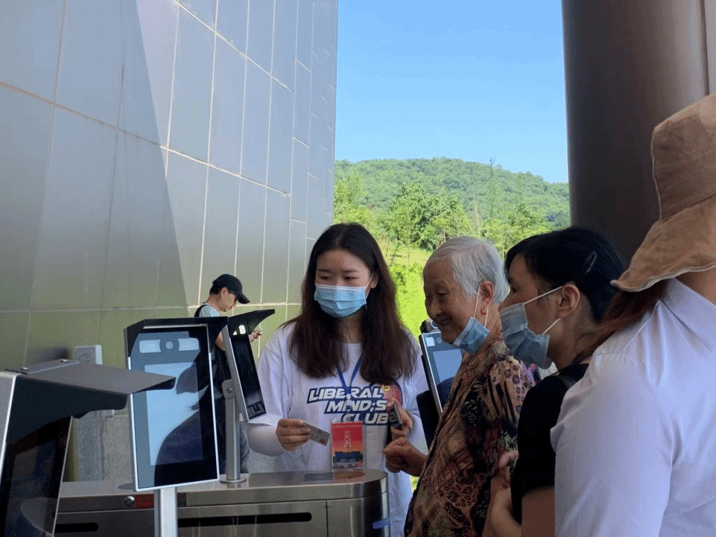 “您好,请出示身份证,人脸识别成功后,佩戴好口罩入馆,谢谢配合!”根据常态化疫情防控要求以及园区管理办法,志愿者严格把好入门关卡,同时在路口引导、帮拍照、擦展示墙玻璃、捡树叶……参观的群众纷纷为这群大学生志愿者点赞。习近平总书记到全州县红军突破湘江战役纪念园参观后,纪念馆成了红色教育的热门“打卡”点,日均接待群众约1.4万名,6月6日广西师范大学漓江学院语言文学学院49名党员、团员主动参与志愿服务,有效缓解工作压力,提升服务质量,用实际行动践行我为群众办实事诺言。纪念园的工作人员说。