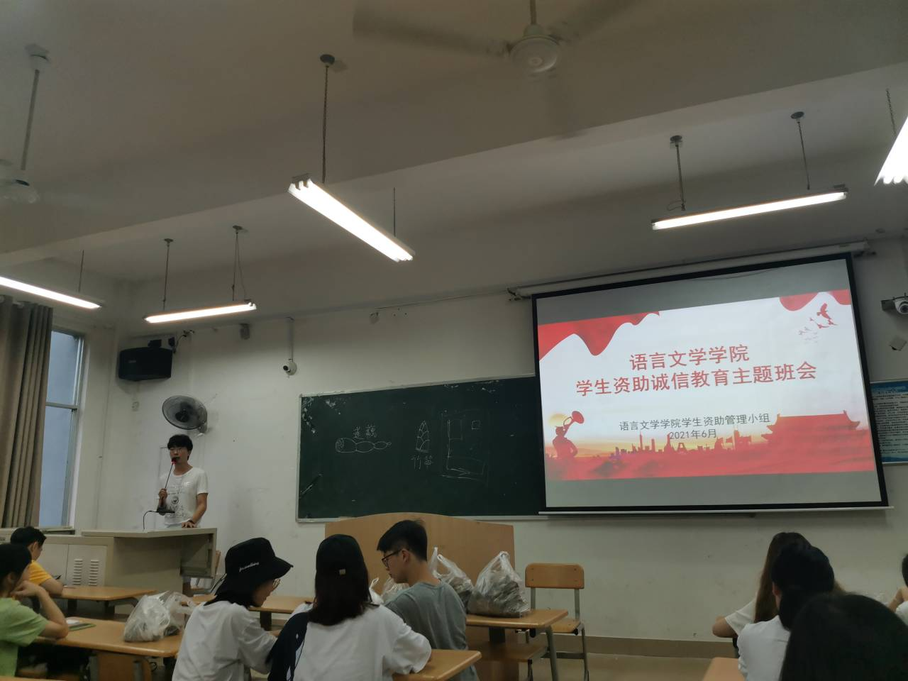6月14日晚,语言文学学院各年级辅导员根据国家资助育人政策,开展学生资助诚信教育主题班会,充分挖掘受助学生的典型事迹,激励班级学生尤其是家庭经济困难学生自立自强、诚实守信、知恩感恩、奋发成才,用扎实的知识和过硬的本领报效祖国。同时,鼓励学生在学习之余积极参加志愿服务和公益活动,感恩祖国,回馈社会。