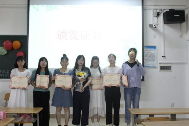 本届换届大会既是对上届学生工作的表彰与感谢,也是对本届学生工作的希冀与鼓励。换届大会如火如荼的开展,在谢老师和会长的殷切期望下,同学们积极竞选且竞选现场井然有序。首先由谢老师上台讲话,在讲话中指出了我们社团是为校内各种考试提供了解平台并且也指出目前学研社存在的问题,对于未来的新生力量也提出了希望。之后是同学们上台竞选,上台的同学虽然都有些紧张,但是进行自我介绍后,也能自信的表达出自己的想法以及学研社以后发展道路的规划。之后台下的人还向竞选者提出相关问题,以考验他们的能力,获得更多的了解。每当竞选者讲话结束,台下的同学们都会响起雷鸣般的掌声,这对于竞选者来说不仅仅是一种尊重,更是一种无声的鼓励。最后给上届成员的颁发聘书,感谢她们两年来的辛苦付出,为社团讲座、会议等奔波,肯定他们的付出。然后学研社全体成员合影留念,留下了一张珍贵的照片。