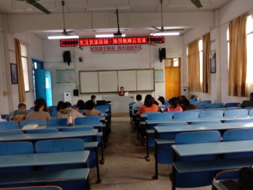 3月28日上午8点,临桂区六塘镇初级中学何校长,为广西师范大学漓江学院2017级的实习生做了《用爱心耐心教育学生》主题讲座。参与讲座的有主讲人主持人李主任,全体实习生。