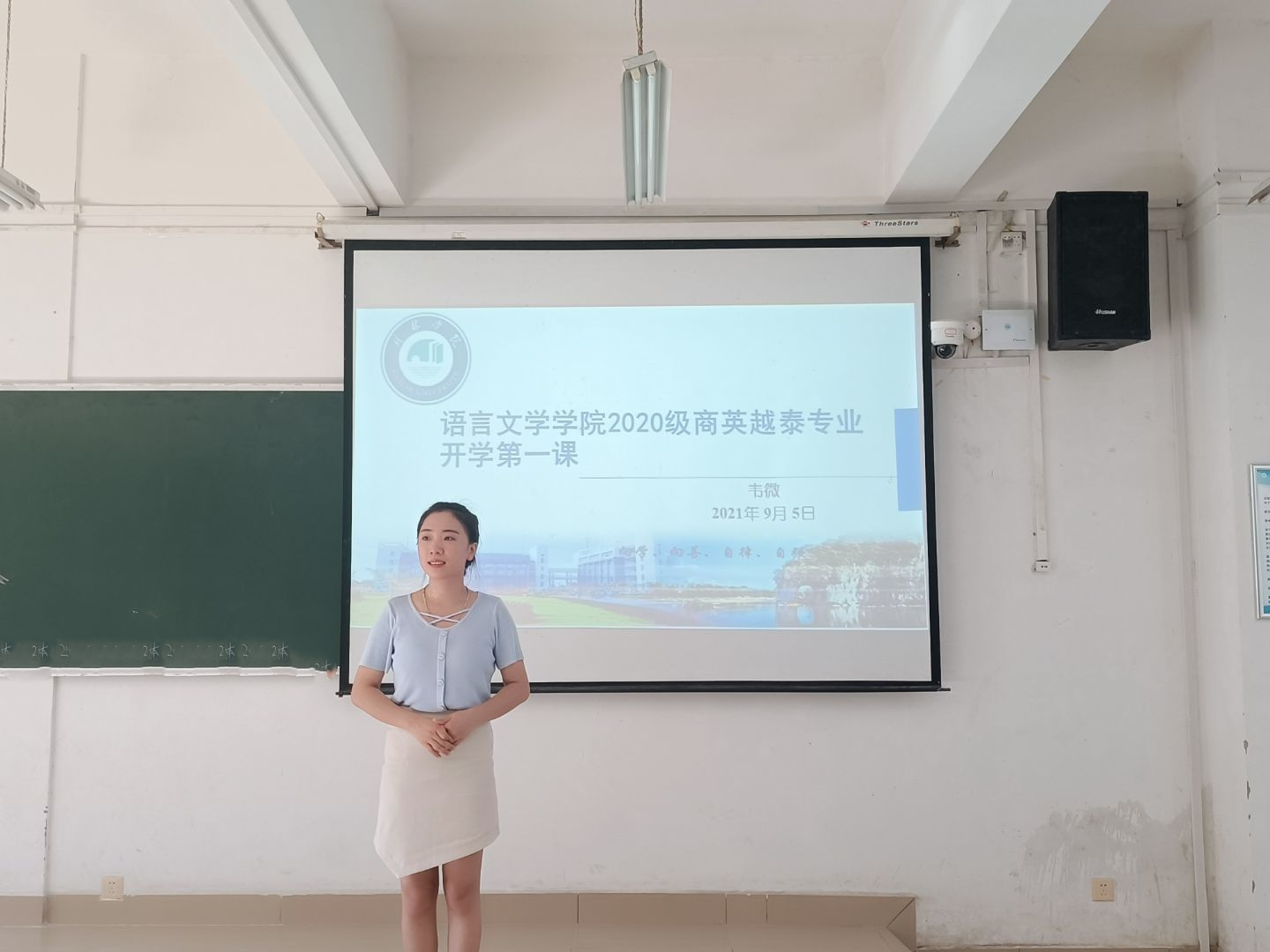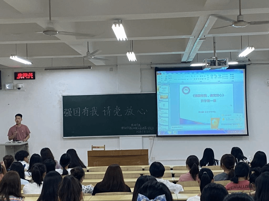 金秋九月,语言文学学院学子共同迎来了别开生面的“开学第一课”,开启新学期的寻梦之旅。为了帮助学生顺利切换“开学模式”,语言文学学院把面对面、心贴心上好、上活“第一课”,将“爱党、爱国、爱校”元素和疫情防控内容融入课堂,用新颖的班会形式点亮开学第一课。