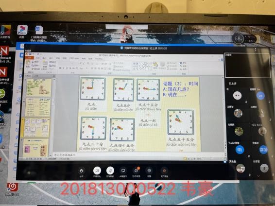 初次登上留学生在线课堂,同学们既紧张,又期待。韦豪同学说:“这次实习,受益匪浅。在线课堂中,指导老师教会我如何鼓励学生,如何营造宽松愉悦的学习氛围,如何上好一堂课,我发现自己越来越喜爱汉语国际教育专业了,我会好好珍惜这次机会,听好课,上好课,做一名合格的国际中文教师。”