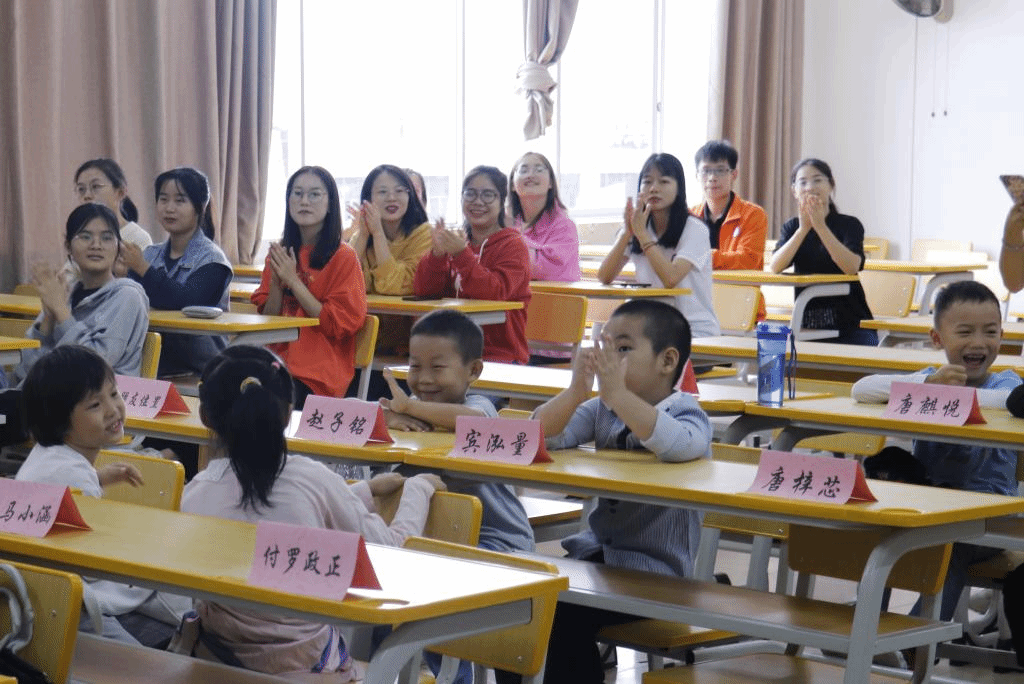 课堂体验。半步斋成员以幽默诙谐的语言向小朋友们讲述中国书法的结构和章程,并指导小朋友们的握笔姿势和书法技巧;小朋友们认真听讲,一笔一划书写并反复练习,直到下课,小朋友们还意犹未尽。最后,全体老师和同学一齐朗诵《半步赋》。