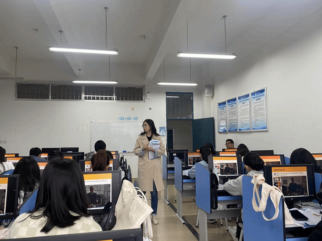 在课堂展示环节,由主讲教师林思丞老师在2303教室以2020级学生为教学对象,围绕新视野大学英语视听说教程第五单元More than a paycheck,以教学常态展示了一堂以工作为主题的大学英语课。此次课堂展示,以“思政教学融入大学英语教学”为理念,在教学知识点中充分挖掘与主干知识点相关的思政教育元素,课程的思政元素重点突出跨文化交际能力、树立社会主义核心价值观两个方面,有效地帮助学生培养正确的人生观和价值观,以及艰苦奋斗、勇于奉献的职业精神。在课堂展示后,学生进入在线学习环节,通过线上账号登录学习,线上教学具有极强的课堂互动性,能够更有效果地完成线上英语课程任务;而线上线下结合学习,有效地促进了大学英语的新兴教学模式,培养了学生自主学习能力。
