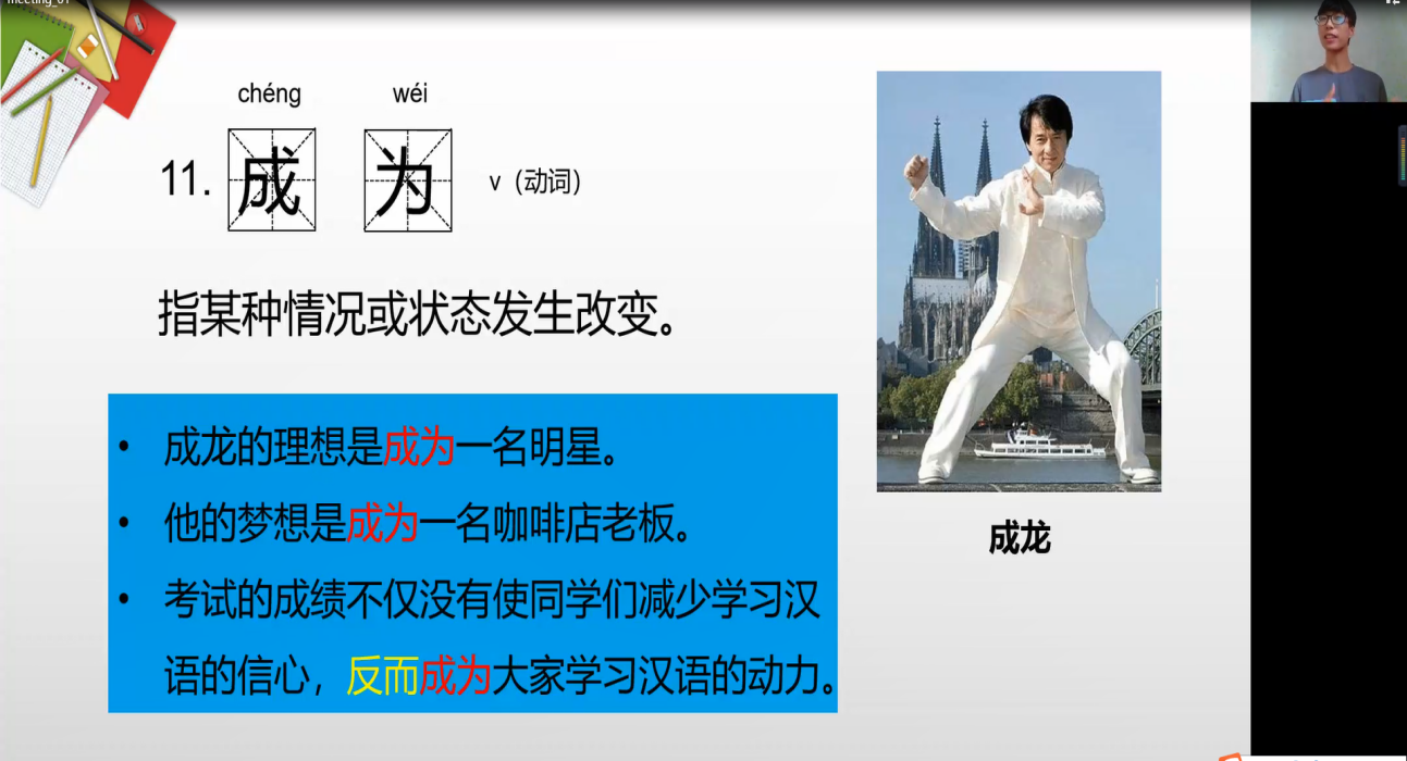 本次线上课堂教学活动在教外国留学生中国文化的同时,也为本专业学生搭建了一个充分展示教学风格的平台,助推了他们的专业成长,促进了教学水平的提升。只有明其所长、知其缩短,才能在教学过程中得心应手,学以致用,争当中国最美代言人!