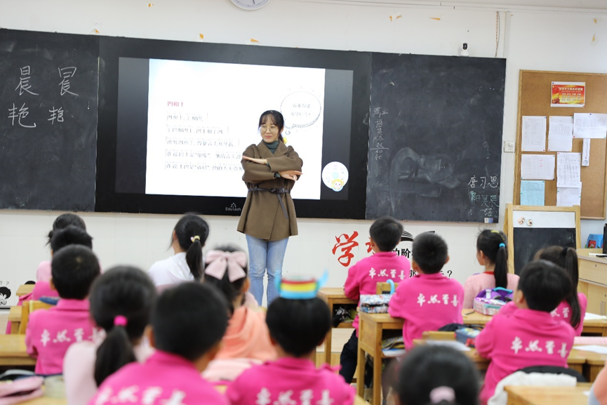 活动围绕主题展开,形式丰富多彩,既有趣味语言文字游戏、口部操、手语操,也有针对方言易错字词进行绕口令训练、古诗词朗诵,使小学生在“看、学、读、跳”中感受通用语言文字魅力,提升“讲好普通话”的意识。通过规范字与错别字的对比、练习正确的书写坐姿和握笔姿势、学习规范字书写笔顺等活动,激发小学生认真书写规范字的热情。本次活动响应“请党放心,强国有我”的号召,在朗诵环节选取体现红色精神的内容,向小学生宣扬爱国主义精神,鼓励他们争做“红色少年”。卓然小学叶校长全程参与活动并高度赞扬,她认为本次活动让小学生们在玩中学,在快乐的同时收获知识,也提升了全校师生说普通话、写规范字的意识,受益匪浅。