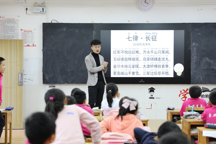图:钟锟老师带领小朋友朗诵《七律•长征》