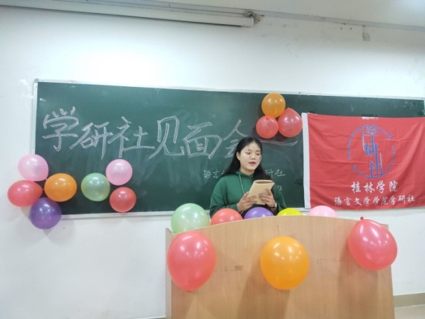 11月5日下午,语言文学学院学研社在1310教室开展本学期新老成员见面会,此次见面会由学研社会长黄紫雯主持。见面会目的在增强新老成员的沟通与交流,让新成员能够更好融入学研社这个大集体,在此次活动中会场井然有序,成员们热情高涨。