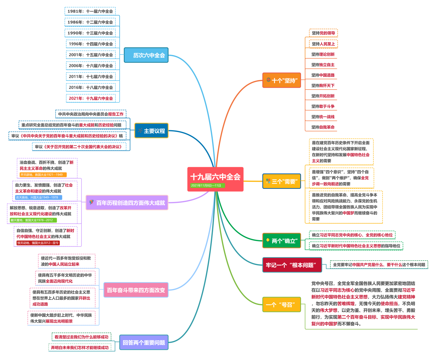 党的十九届六中全会重点研究全面总结党的百年奋斗重大成就和历史经验问题,对于推动全党增长智慧、增进团结、增进信心、增强斗志发挥重要作用,产生重大影响。老师们从百年历程创造四个方面的伟大成就、百年奋斗带来四个方面改变、两个“重要问题”、十个“坚持”、三个“需要”、两个“确立”、一个“根本问题”、一个“号召”八个方面总结剖析。
