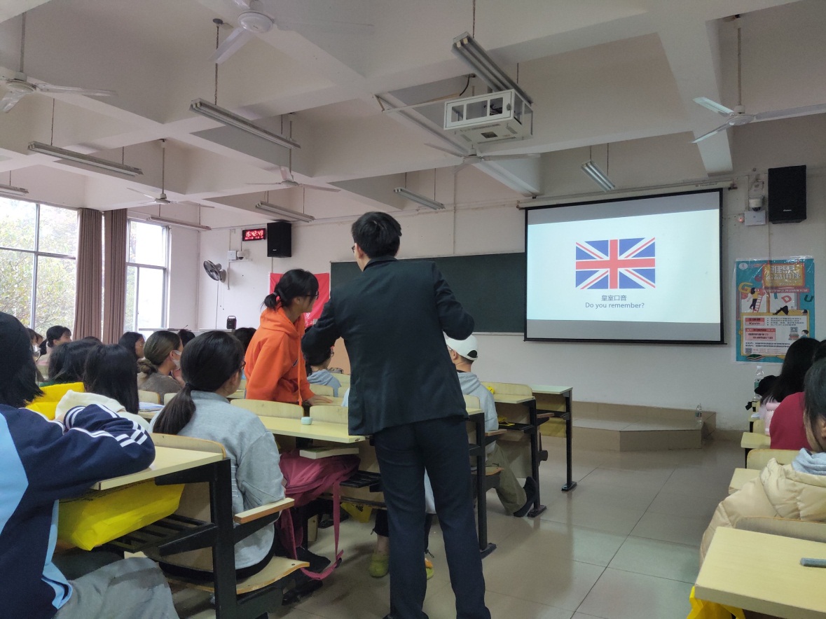 在讲座开始前,于老师首先就雅思对将来同学们继续深造或就业方面所带来的影响进行阐述,使同学们对雅思有了初步了解。讲座开始后,于老师又根据同学们备考雅思中可能遇到的问题进行讲述与解答。于老师还为我们介绍了英国、美国、澳大利亚、印度等国家的发音标准以及一些文化习惯。在介绍的过程中,于老师与同学们进行了一系列的游戏互动,使原本因为下雨而显得沉闷的教室里爆发出阵阵笑声,为这阴暗的雨天里增添了色彩。讲座的最后于老师耐心的回答了同学们提出的关于英语学习的问题,受到了同学们的好评。
