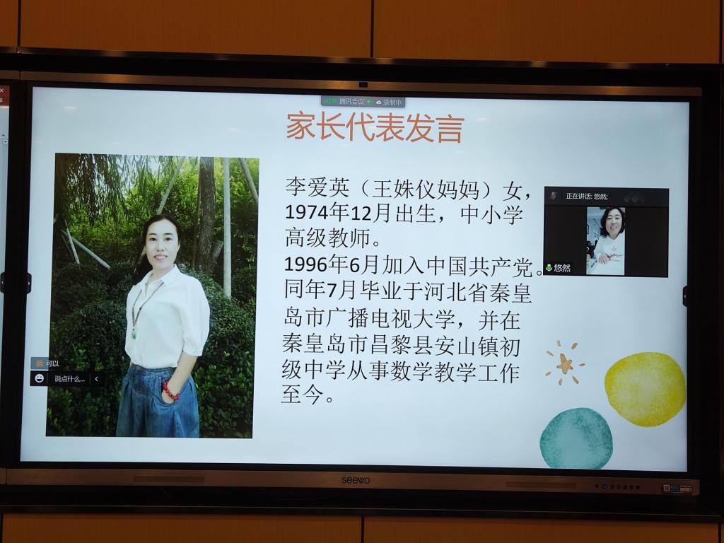 会议伊始,由主持人介绍在场的各位嘉宾,并宣布2020级英语云端家长会正式开始。首先,由闭彬彬老师进行自我介绍和发言,她首先对各位家长能在百忙之中抽出时间来参加这次家长会表示深深的感谢,随后向家长们介绍了高校辅导员的工作职责,让各位家长都对辅导员这一概念有了新的认识。同时还重点强调了希望家长们重视学生的心理健康问题。接下来,老师通过分享一段视频让家长们走进孩子的大学校园生活。整个会议分别通过以下几个环节来让家长们更加细致地了解到孩子的在校生活情况:讲解本年级专业的基本情况以及学校的管理制度;教师代表发言和家长代表发言;展示播放各班学生感恩视频。