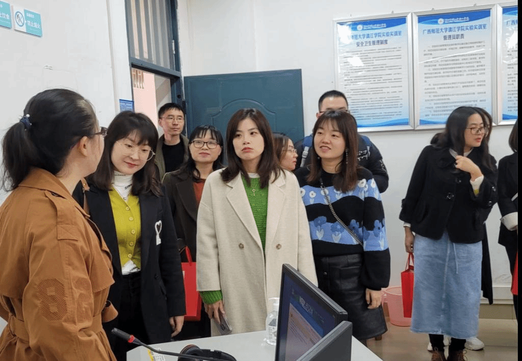 在研讨后,覃浩老师与柳州工学院的老师们参观了我校的语言室,并进入课堂,与我校老师们进行交流。