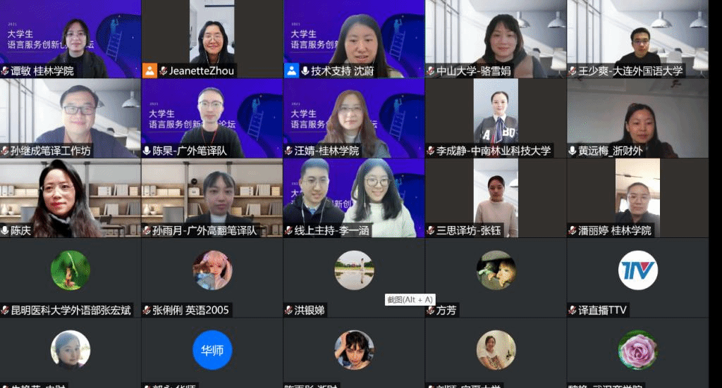 为提升大学生创新创业能力,促进协同育人发展,12月4日我校语言文学学院“至信至善”翻译工作室师生受邀参加了大学生语言服务创新创业论坛(第一期)。本论坛由大学生语言服务创新创业联盟(筹)和广东外语外贸大学高级翻译学院创新创业实践训练基地主办,通过译直播平台、腾讯会议全网直播。此次论坛共邀请6支大学生语言服务创新创业团队分享各自运营经验,分别来自山东理工大学、大连外国语大学、桂林学院、中山大学、中南林业科技大学及广东外语外贸大学。