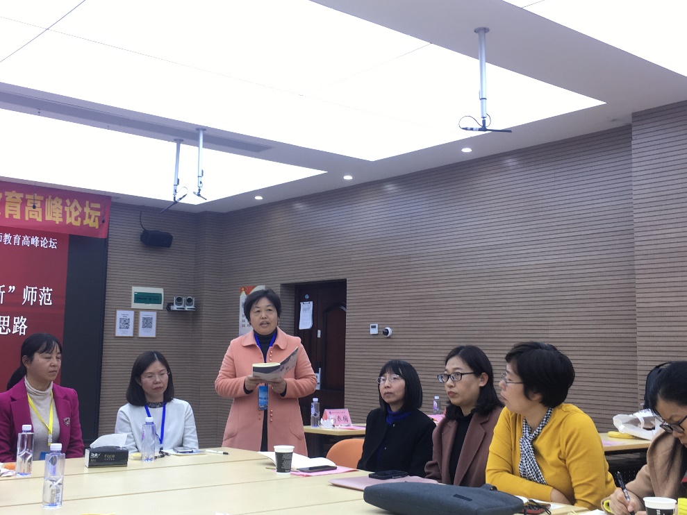 论坛上,各院校就本次论坛的主题分别进行了发言。英语教师教育教研室主任陆海峡老师,从课程设计的理念、课程教学条件、课程内容、课程教学组织方式、多元立体考核评价等方面,介绍了我校英语专业实践课程教学情况。在讨论环节,12所参会院校的老师围绕新师范建设背景下“新”师范发展理念的思考和实践、培养目标的定位及达成路径、课程设置改革与实践、实践教学体系的研究与构建、协同育人模式的分析和探索、评价体系的设计与建立等专题进行了深入研讨。最后,何玲院长对本次论坛做总结发言,指出各院校从“三习”贯通、实践教学探索、产学研融合、课程思政等方面进行了探讨,本次论坛是一次有深度、有广度、有温度的交流,呈现了规格高、意义重大的亮点。本次论坛是对上一年工作的总结,也是新工作的起点,新师范建设背景下“新”师范发展需要这样的交流平台,需要大家齐聚一堂共同商讨,齐心协力共同促进英语师范生的培养。