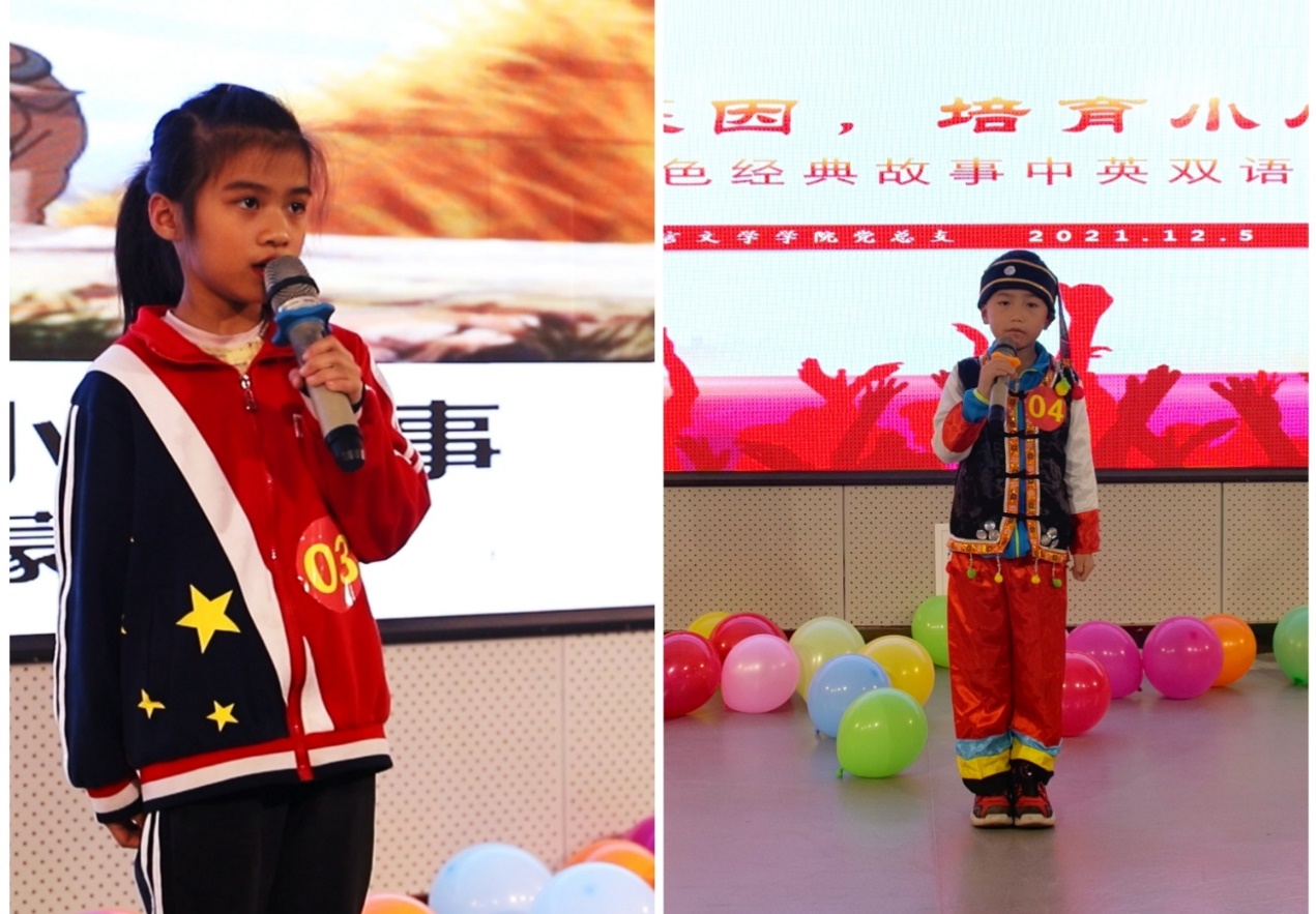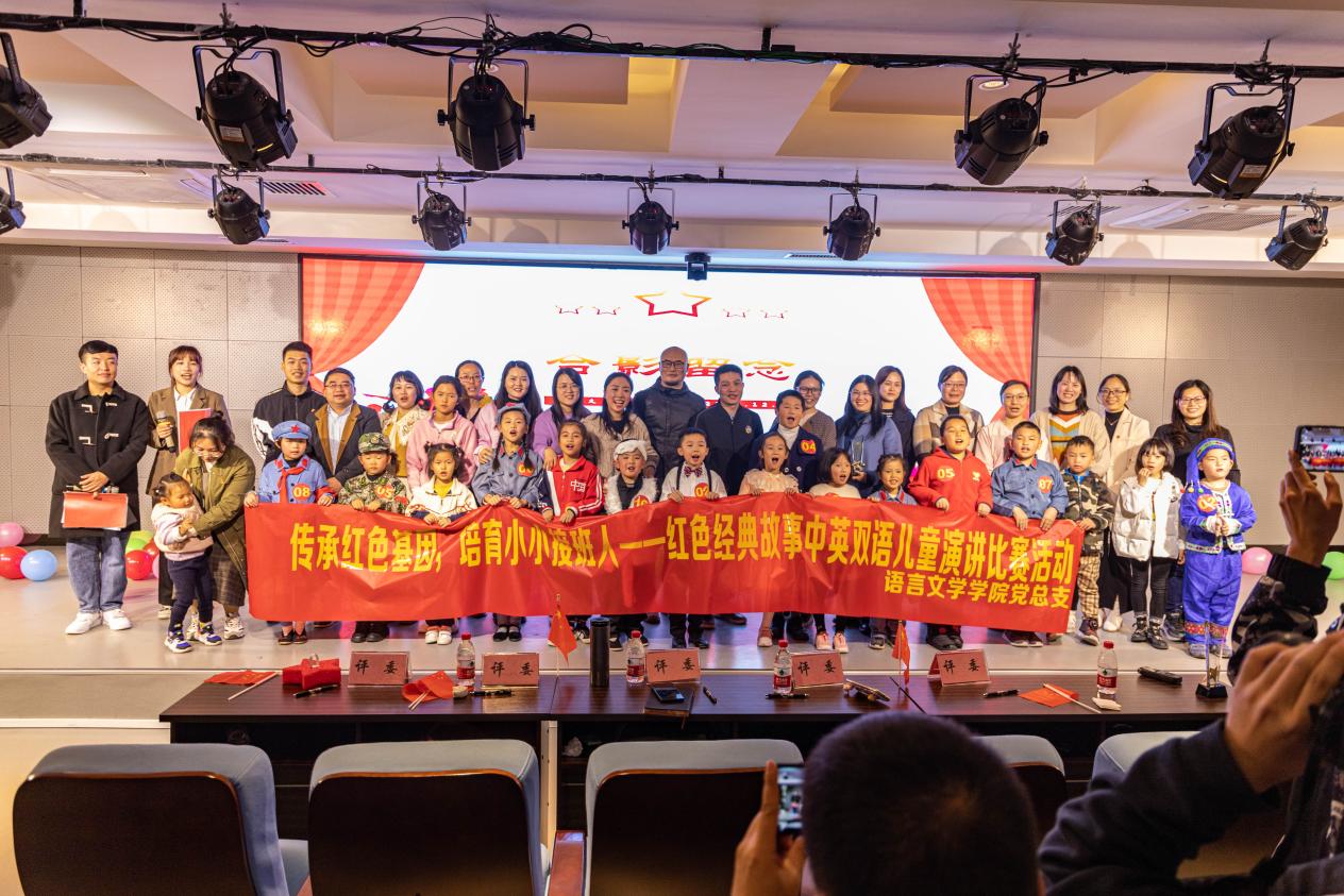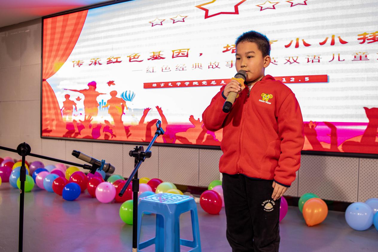 为深入开展党史学习教育,学习贯彻习近平新时代中国特色社会主义思想,弘扬革命先烈丰功伟绩,继承革命先辈的优良传统,培养儿童爱党、爱国、爱社会主义的朴素感情,牢记党的嘱托,明确肩负使命,激发乐学热情,争当新时代优秀儿童。2021年12月5日下午,语言文学学院党总支在至善讲堂举办“传承红色基因,培育小小接班人”红色主题经典故事中英双语儿童演讲比赛。