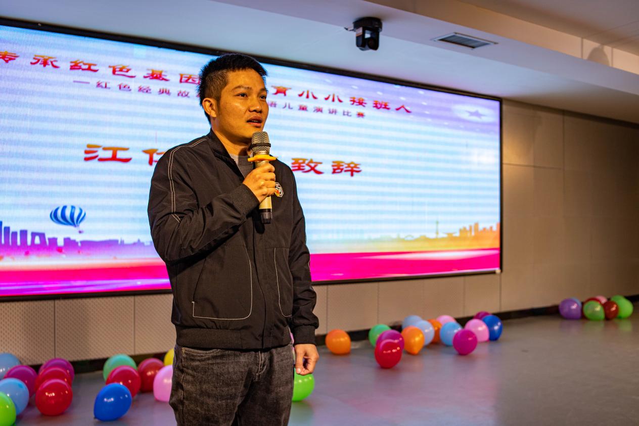 比赛前,语言文学学院党总支书记江仿致开幕词。他指出,今年正值建党百年,通过演讲红色经典故事,让教职工与孩子在活动互动过程中,感悟鲜活的革命故事,传承红色基因,赓续红色血脉。既体现了我院对教职工的思想政治素质以及党性修养的重视,也注重“桂二代”红色主题的教育和熏陶,让“请党放心,强国有我”的铮铮誓言落地生根。他希望,教职工能结合本职工作,立足岗位实际,说革命先烈先进事迹、讲革命先烈真实故事,对其中的人物、故事、情感进行品读、体会、延展,感受每部经典背后隐含的价值,用激昂的斗志和铮铮的誓言表达了自己不忘初心、共筑中国梦的信念和决心。最后,他预祝活动取得圆满成功。