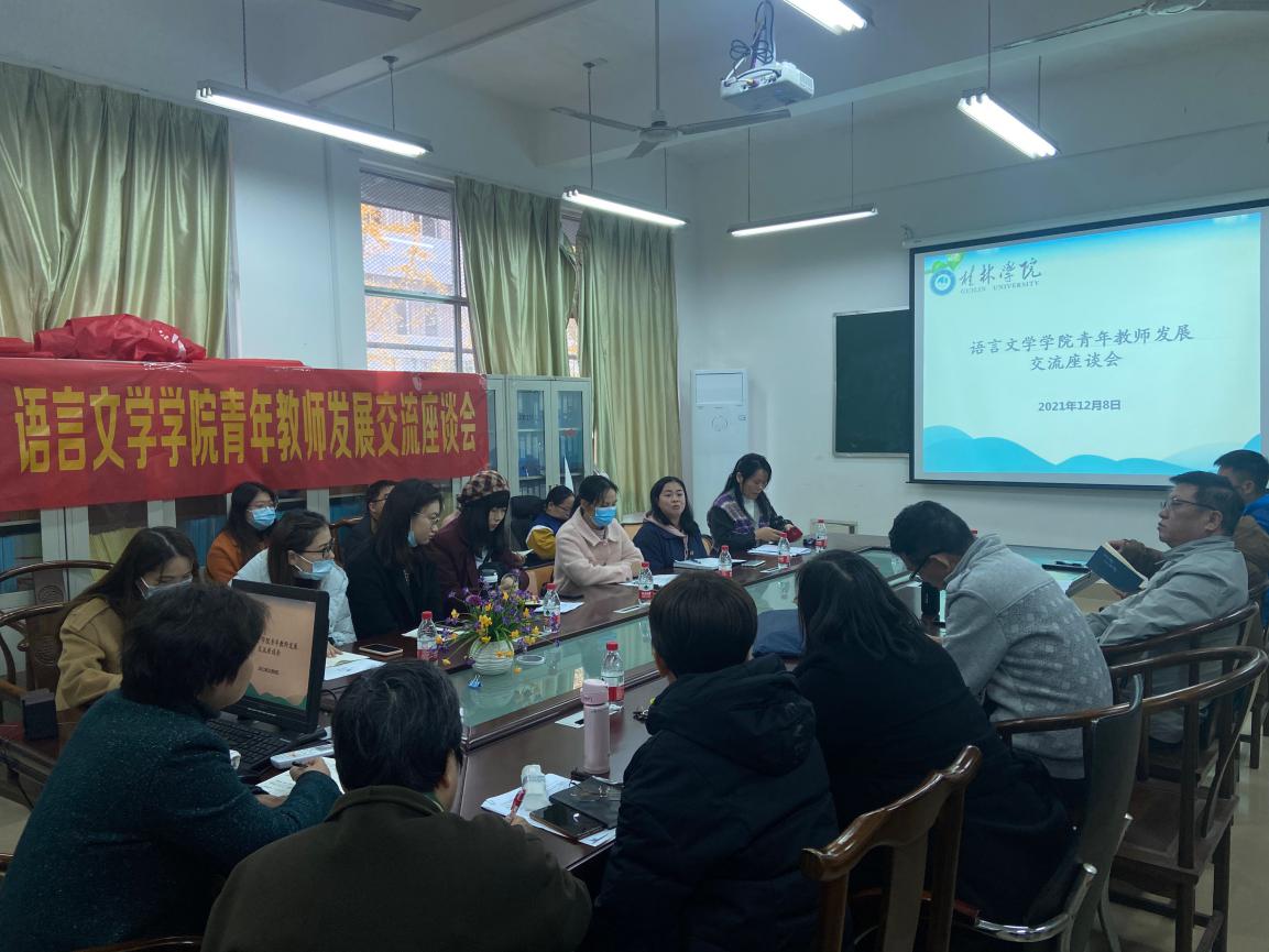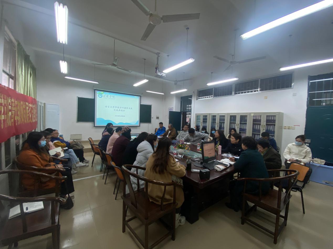 为加强师资队伍建设,促进青年教师健康发展,12月8日下午,语言文学学院召开了青年教师发展座谈会。中文类全体教师及英语类青年教师参加会议。会议由何玲院长主持。
