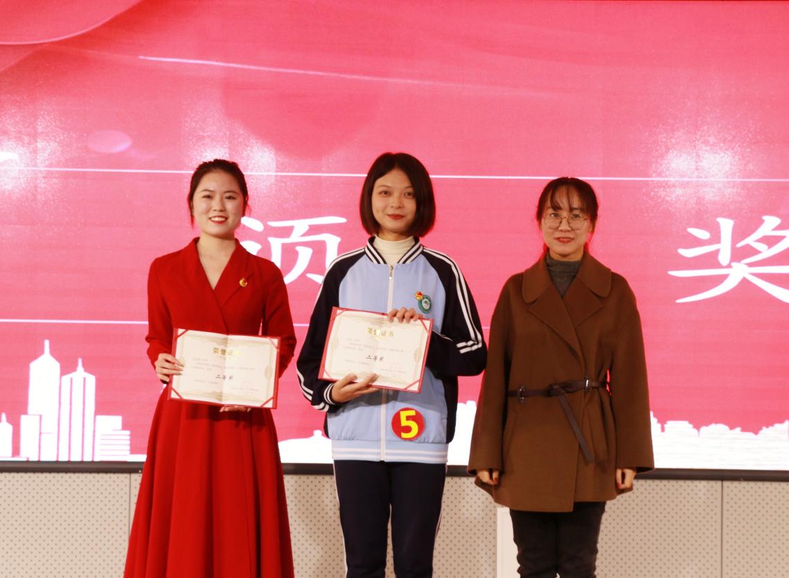 比赛以线上与线下相结合,来自各二级学院的百名选手通过线上提交作品的形式参赛,经过初赛的比拼,最终有10名选手成功入围决赛。10名选手按次序依次上场朗诵,并由评委老师现场打分。在比赛过程中,选手们充满激情地朗诵,回顾百年党史,百年征程,他们时而慷慨激昂,时而低声诉说,声情并茂地表达对红色文化的敬仰,抒发对祖国母亲的深深热爱,讴歌建党百年的丰功伟绩,倾吐对祖国未来的期望。最后经过激烈的角逐,周琴芳同学获得一等奖,张桂翠、庄美思同学获得二等奖,郭裕冰、彭嘉悦、彭迪同学获得三等奖,兰馨、钟君陶、陶柳娟同学获得优秀奖。