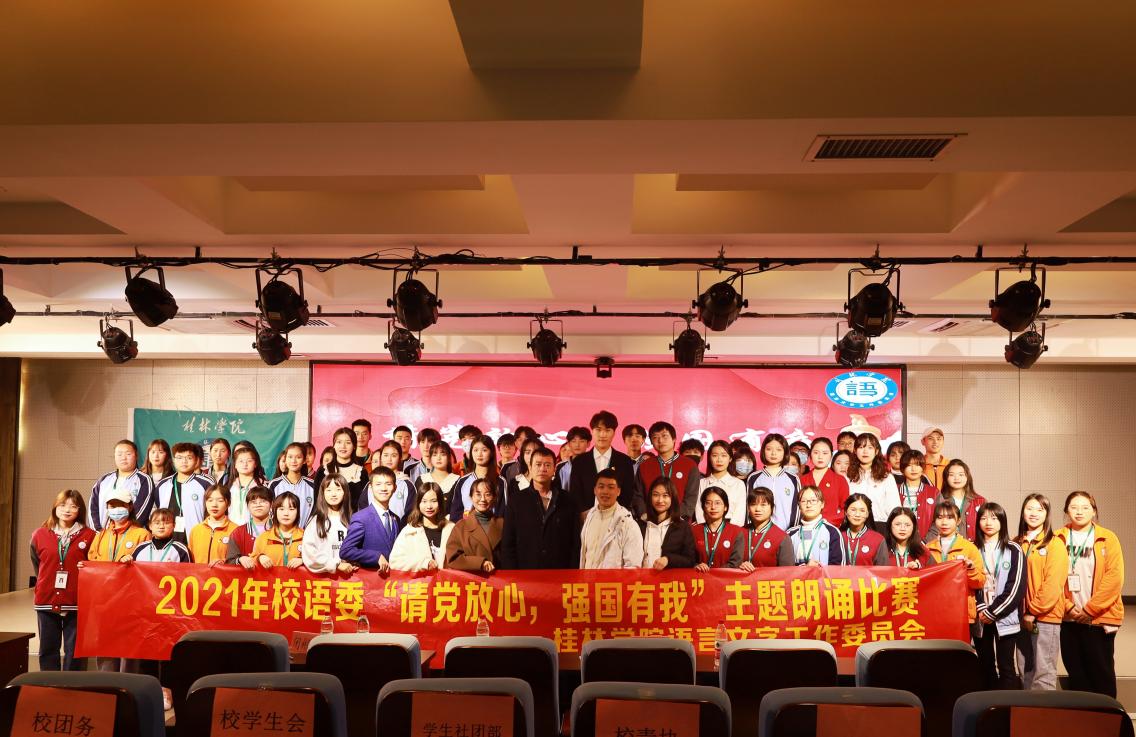为庆祝中国共产党成立100周年,弘扬爱国主义教育,深入贯彻学习习近平新时代中国特色社会主义思想,落实《新时代爱国主义教育实施纲要》,培养担当民族复兴大任的时代新人,进一步激发引领广大青年学生共抒爱国情怀、坚定理想信念、凝聚奋进力量、传承红色基因。我校语言文字工作委员会于12月15日晚,在至善讲堂举办“请党放心,强国有我”主题朗诵比赛。校语委副主任、教学与科研管理处处长杨杰夫,校语委常务副主任、语言文学学院副院长陈锴,校语委指导老师邓克鹏、闭彬彬,语言文学学院唐佳淇老师以及校语委等组织学生干部参加此次活动。