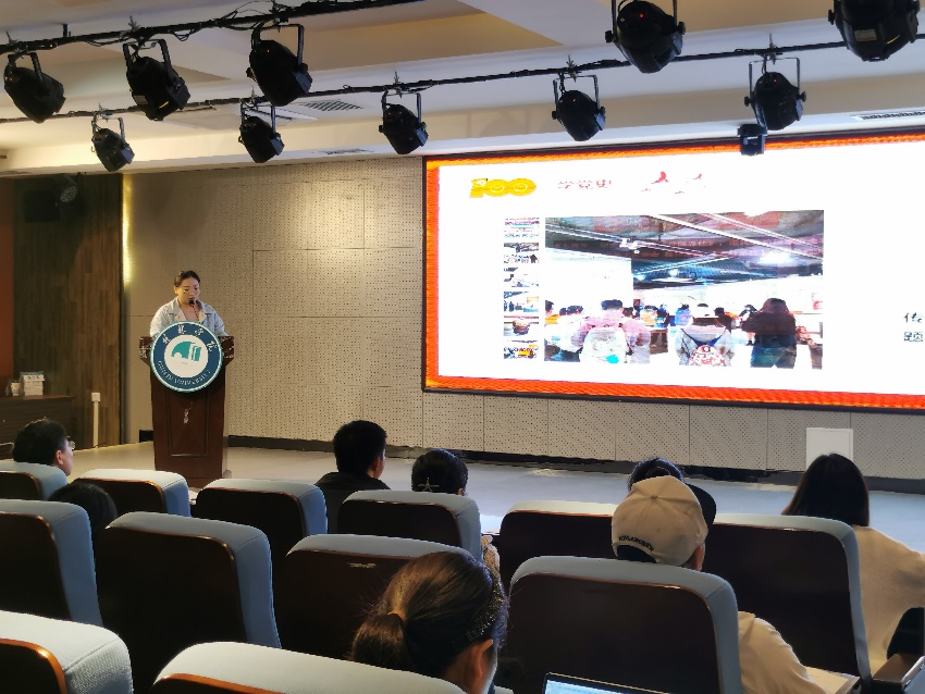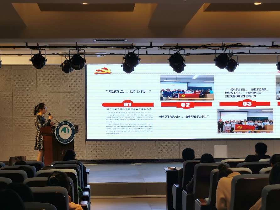 图:第一学生党支部书记李晓蕾做汇报、展示
