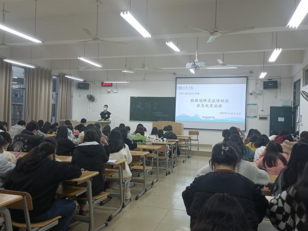 为切实做好学校疫情防控工作,3月27日晚,语言文学学院结合线上与线下的晚例会形式,针对学校下发的新冠肺炎疫情防控应急处置流程开展了演练培训会。