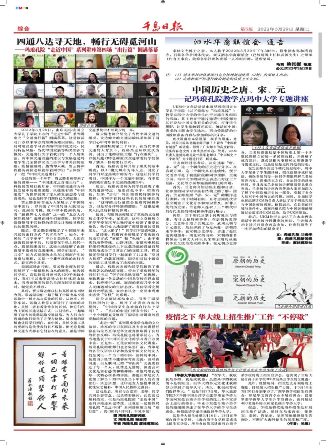 我院汉语国际教育专业学子“走近中国”系列讲座受到印度尼西亚《千岛日报》报道