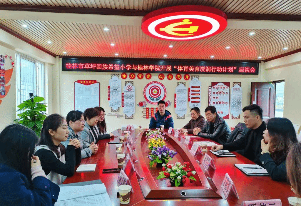 为有效落实“体育美育浸润行动”,探讨高校支持中小学体育美育协同发展、双向赋能的长效机制,增强中华优秀传统文化的传播力、引领力、影响力、体验力,3月31日,桂林市雁山区教育局主任明耀勤、桂林学院合作发展处副处长陆巧华、语言文学学院院长何玲教授及其团队成员赴桂林市草坪回族希望小学开展协同育人活动。