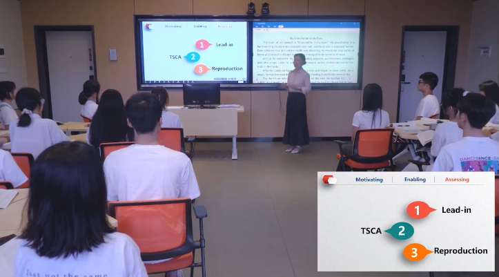 图:大学英语参赛团队秦一涵老师进行真实课堂教学