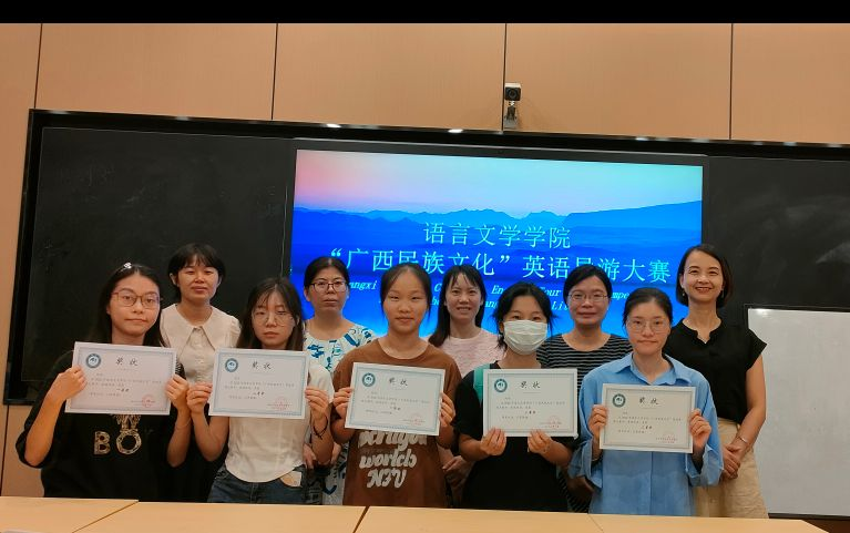 为给英语专业学生搭建一个展示英语语言能力、导游能力和民族文化知识储备的平台,推动外语教学与民族文化的融合,培养学生的家国情怀、人文素养和英语语言应用能力,提高学生的综合文化素养和导游技能,9月15日语言文学学院举行首届“广西民族文化”英语导游大赛。