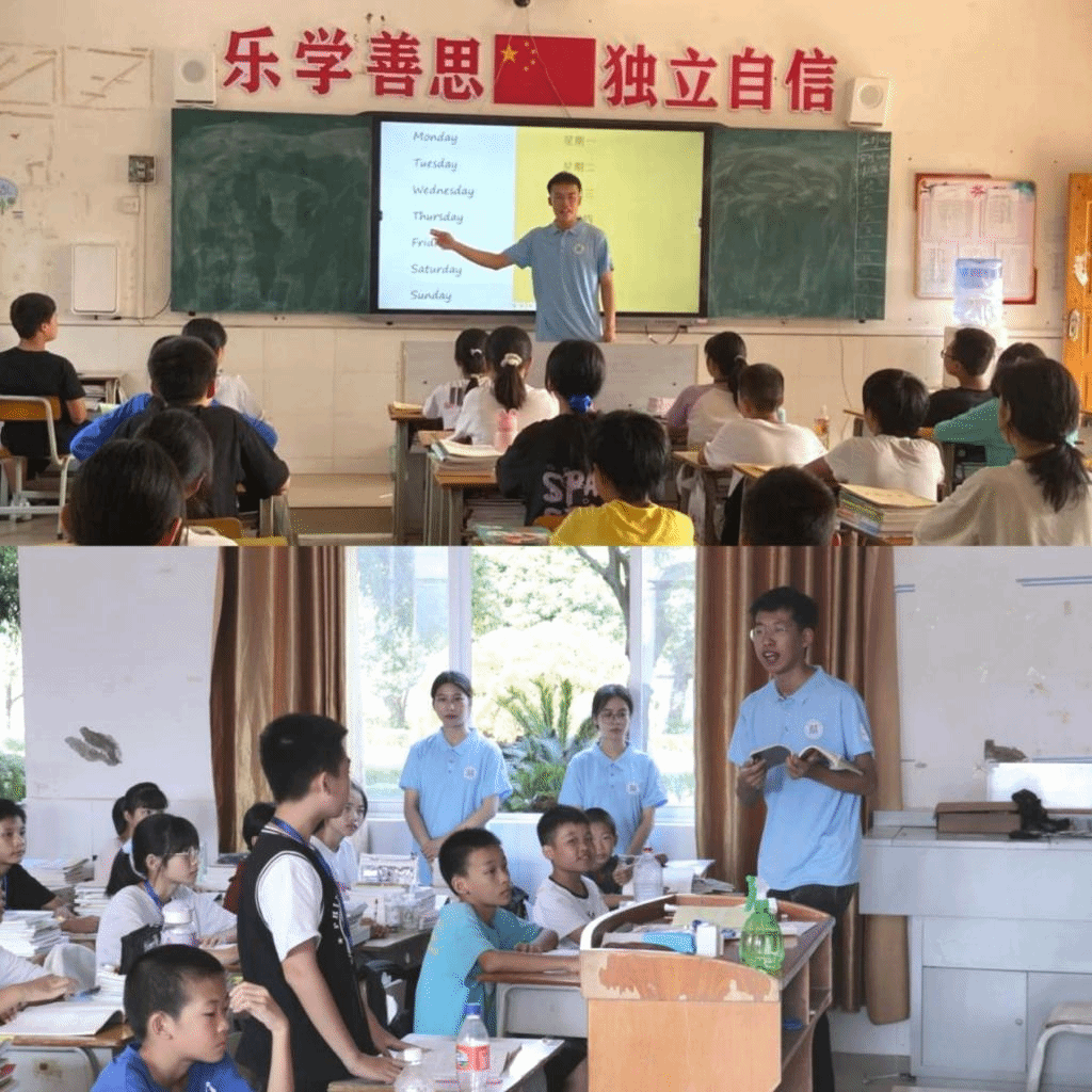 大学生步入初中课堂,与所在班级学生进行实践教学,我院学生代表阳霖辅和张锦延同学分别担任该校初一年级四班和五班的助教老师。在教学互动环节中,两位主讲人提问学生,学生们积极举手回答问题,产生了浓厚的学习氛围。在汉字和英文书写教学环节中,对所在班级学生进行书写教导,矫正学生写字的不良习惯,帮助他们理解书写的正确方式。最后在评比“优秀书写者”环节结束课堂教学活动,对所带班级学生的课堂书写表现评选出前二十名优秀同学,给他们颁发证书和奖品。